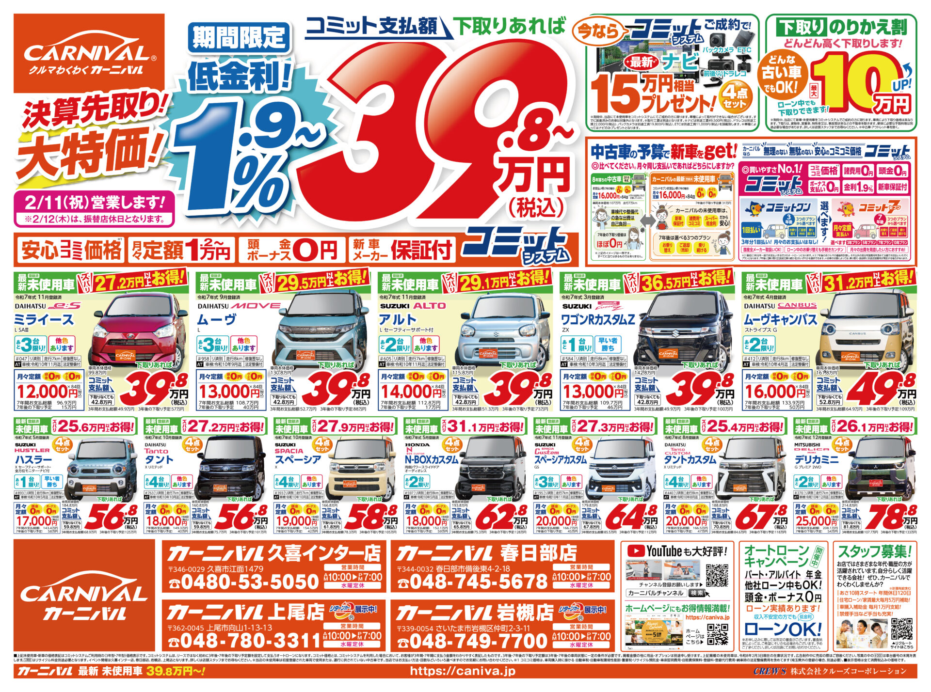 掲載しきれていない未使用車・中古車を多数ご用意しております