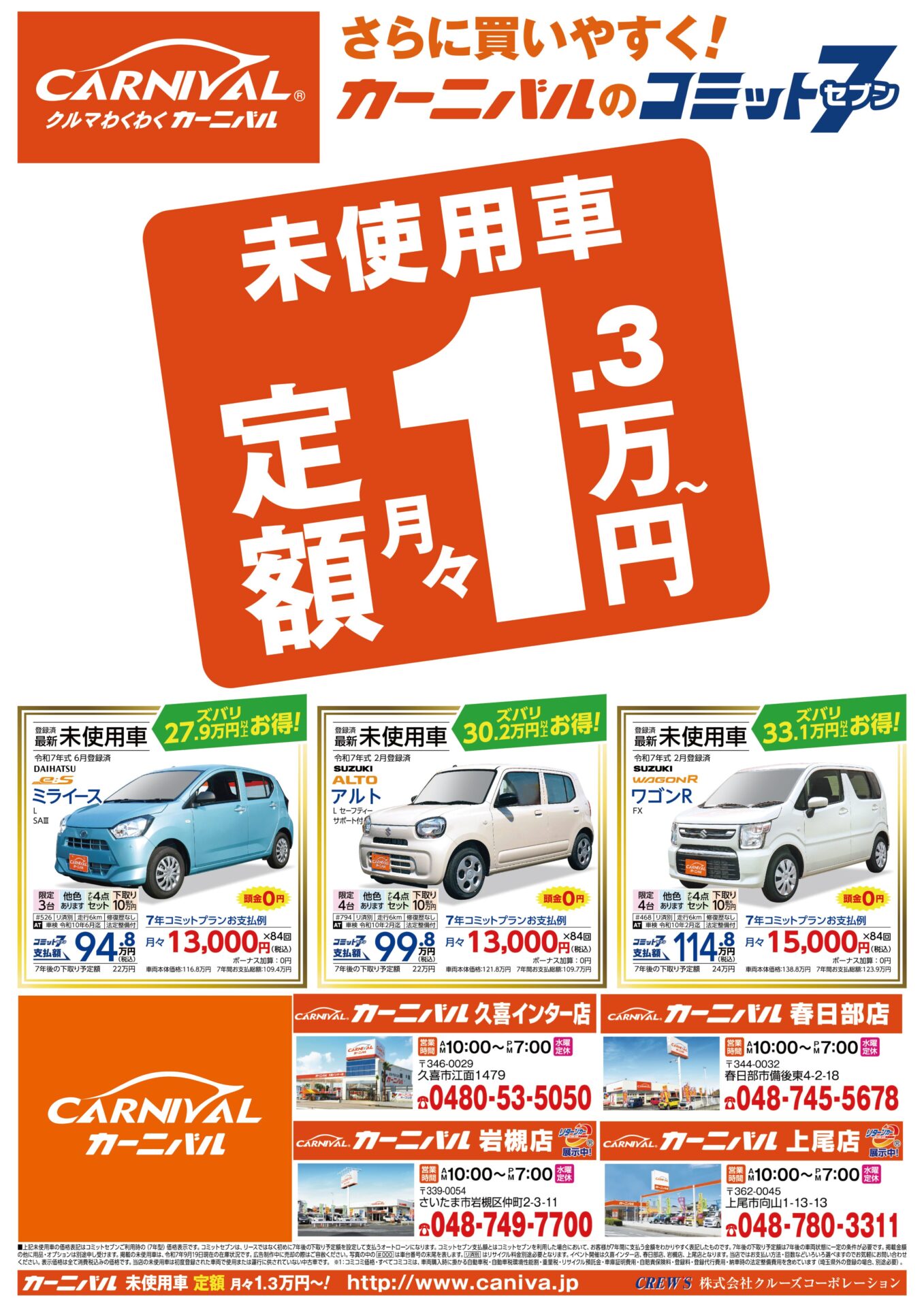 さらに買いやすく!最新の未使用車が月々1万円台で乗れるコミットセブン