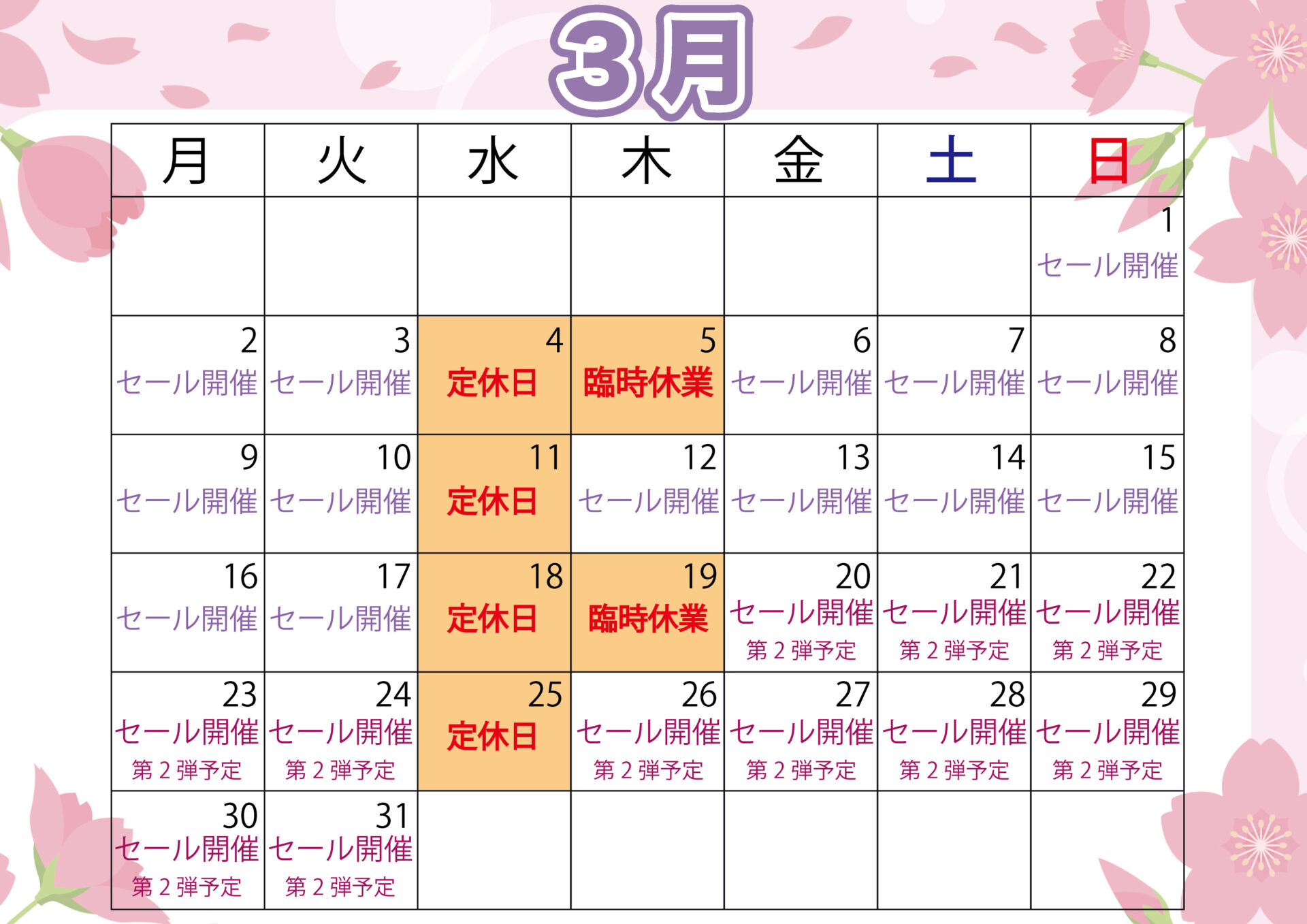 3月もお得なキャンペーン・セールを開催いたします